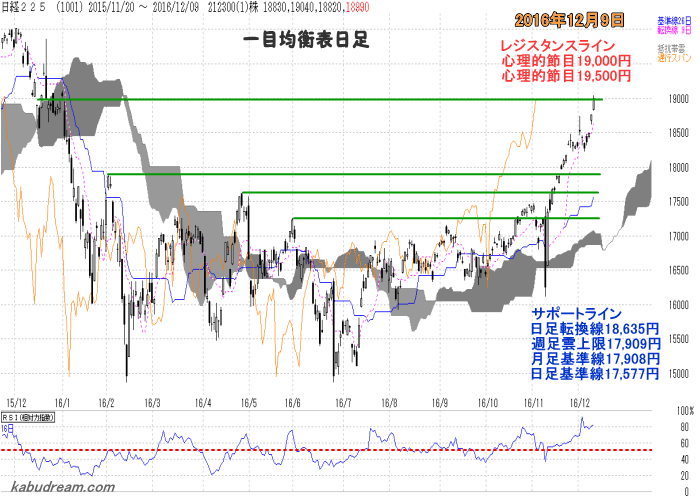 日経平均 週間チャート分析 2016年12月12日 12月16日の日経平均予想