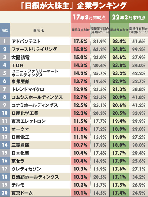 コロナ禍で増える 日銀が 大株主 の企業ランキング 300社 完全版 ニッポンなんでもランキング ダイヤモンド オンライン