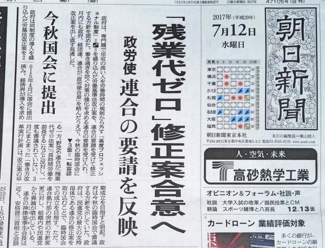 連合 批判から一転容認 残業代ゼロ 修正を条件に 朝日新聞デジタル