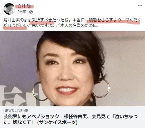 Shin V Twitter 白井聡 の 言葉だけの謝罪 に対する 左翼 のレス 同じ思いを心で呟きましたよ 松任谷由実しね 死ねは不快ではない 松任谷由実にはガッカリ 死ねは決して間違っていませんよ 今後も更に社会悪 松任谷由実さんなど に切り込ん